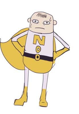 For the concept of NoooooMan, as the main character we made a loser hero, but he tries to do good things and sacrifices his life. We made Noooooman fat, short and with “innocent” colors like white and yellow.