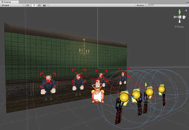 Sergio Martinez made different custom tools like the GunManager. With this tool, it was easy to create a lot of levels. The tool can detect the number of guns and it’s possible to configure every gun: the trajectory, the point of the bullet impact and the time when the gun shoots.